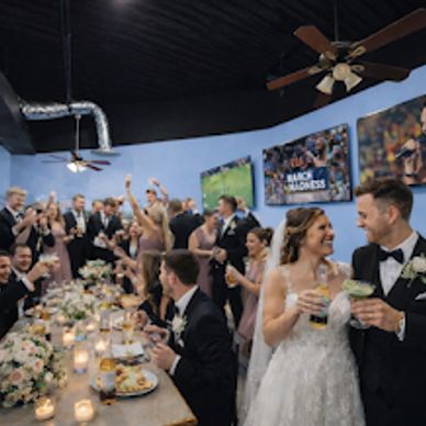 A Shuttle will take all the Guests to the Venue less than 2 minutes traveling time, and run back and forth for your guests to accommodate all there needs. After the Wedding & Reception, the Shuttle will return Your Guests to the Off-Site Parking, where the "After-Party" is located inside and open until 2 am or until everyone has left the buidling! Shuttles to located Hotels, Uber & Lyft rides will be available as well, so All Your Guest will get to the Hotels & Home Safe.