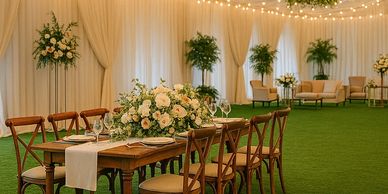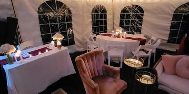 The excellent, Lake Front Wedding & Event Venue is Outdoors under a 30'x40' or an Optional 30' x 60' or a 30'x100' Commercial Tent. It is Heated or Cooled, and the Venue is Responsible for all Tent coordination, set-up, management, and everything else's that is required. Your do not have to worry about anything.